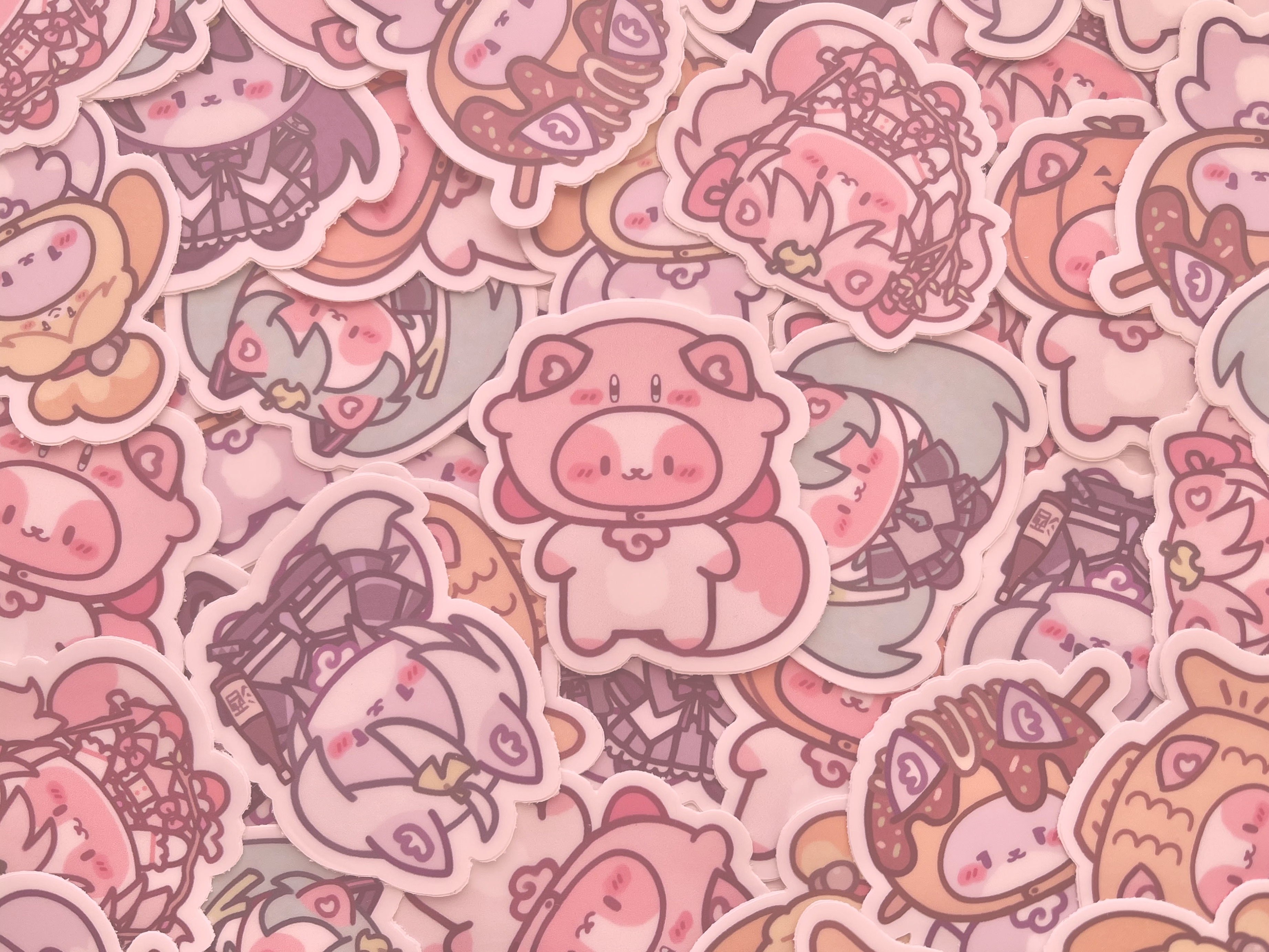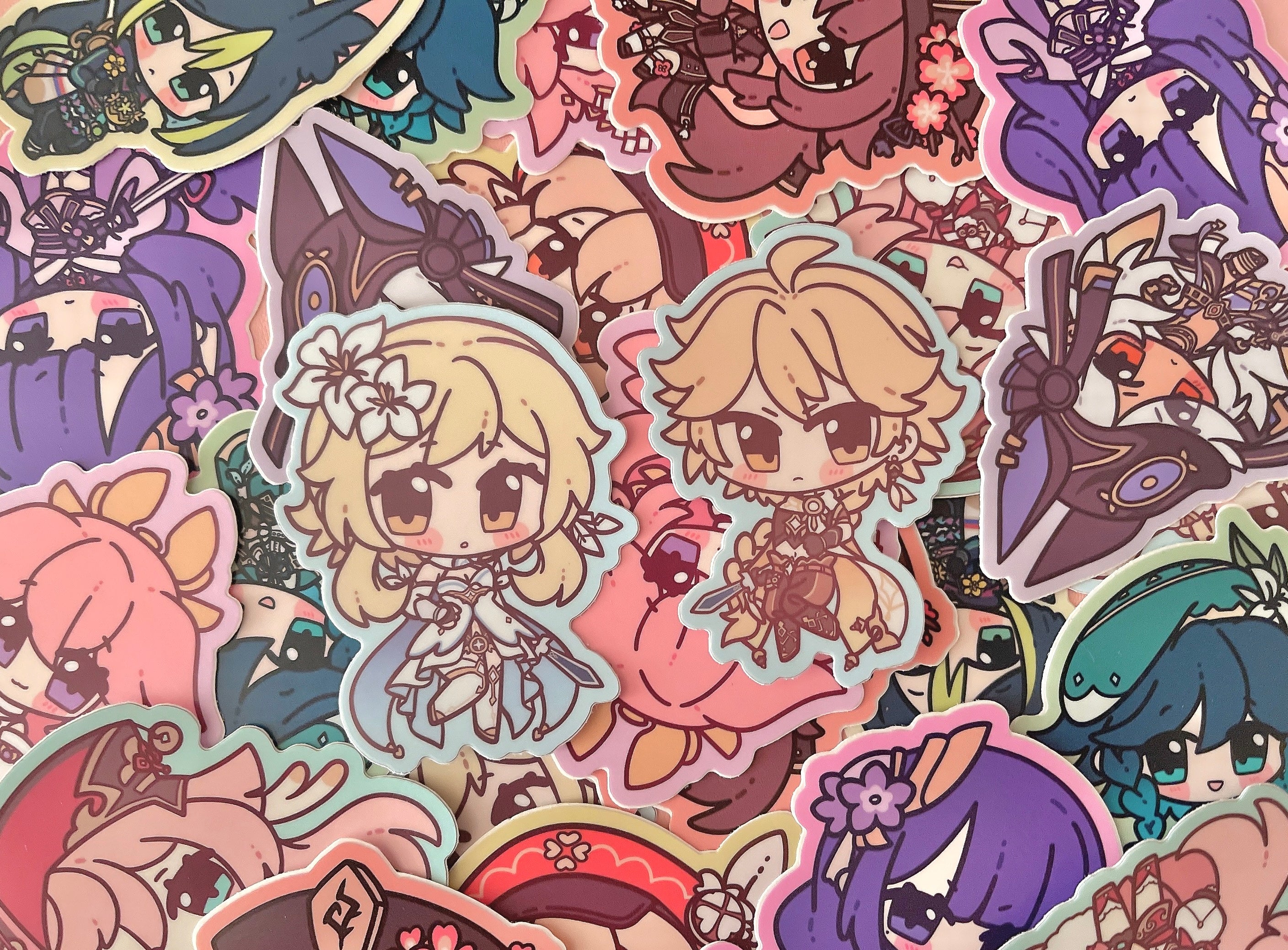 The charms are so cute and detailed with the little gold horse shoes and the perfect clear gradients for each character~ and the print is nice and sturdy and bright! And the stickers are nice and glossy and sharp and cut perfectly for pasting on various objects~ Thank you very much for the goods!!!!!
