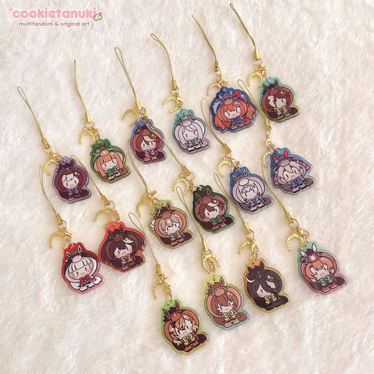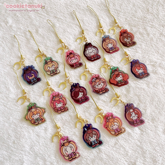 The charms are so cute and detailed with the little gold horse shoes and the perfect clear gradients for each character~ and the print is nice and sturdy and bright! And the stickers are nice and glossy and sharp and cut perfectly for pasting on various objects~ Thank you very much for the goods!!!!!